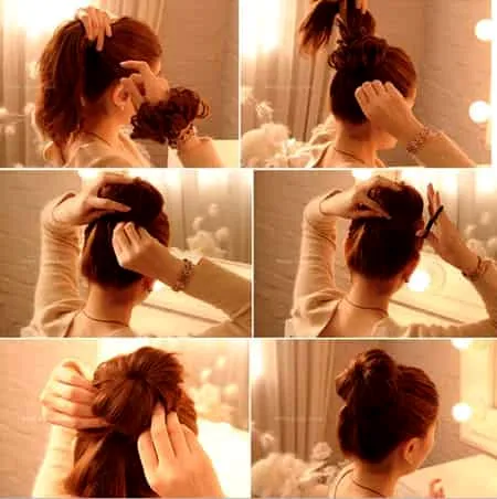 Step1:首先扎一个马尾,从前面稍微能看到一些马尾,这种高度最好。