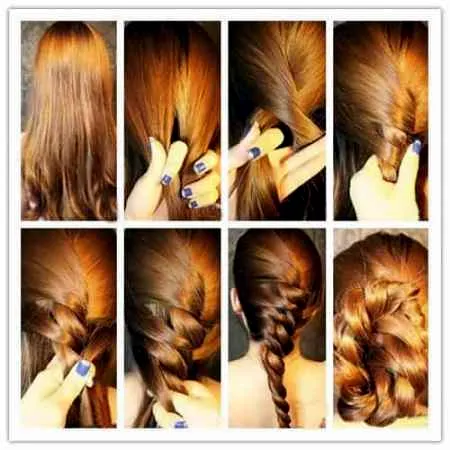 Step4:交叠两次之后,从左边挑取一束头发与其中任意一束头发合并在一起。