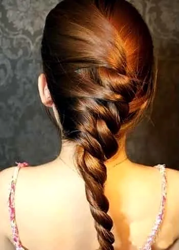 完成图:编至发尾处,再用皮筋固定好辫子就好了,如果你喜欢淑女发型,当然也可以盘起来。