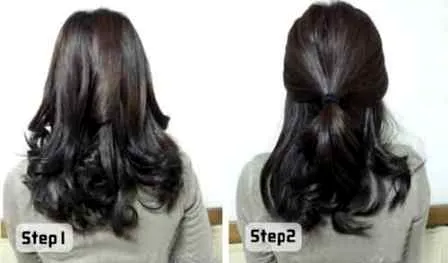 step2:取头部上半部分的头发,扎成一个马尾辫。