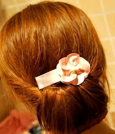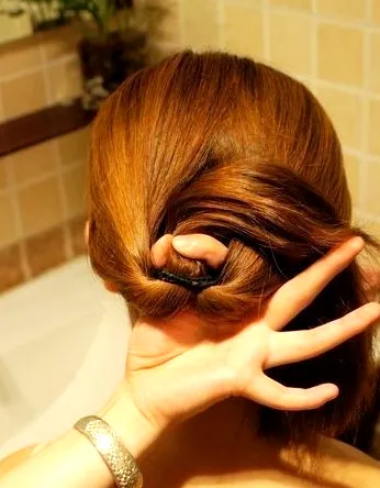 步骤三:如图所示将发尾的头发向上卷,然后用一款好看的发夹固定住即可。