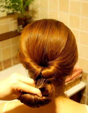 步骤二:将发尾的头发往掏好的洞中往下拉。