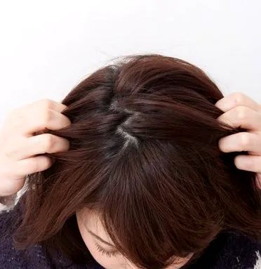Step2:取出右侧耳朵附近的头发,编织成简单的三股辫。