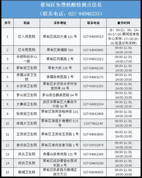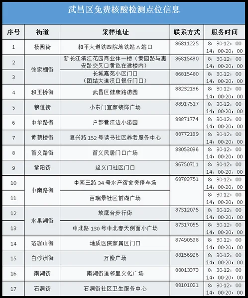 武汉免费核酸检测地址名单2022(最新)