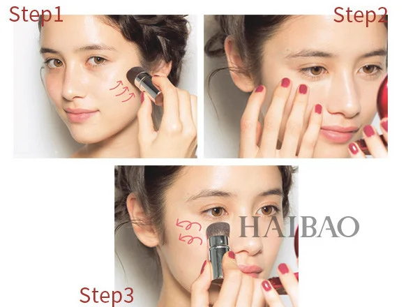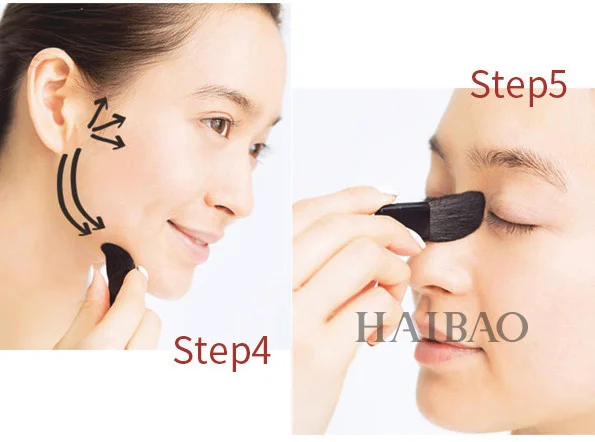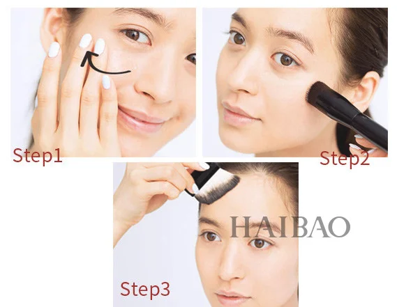 Step1 用刷子沾取底妆粉饼,沿颧骨下方部分向上扫。